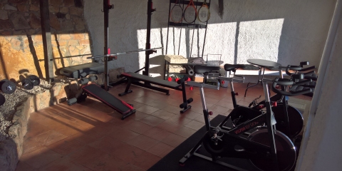 Right next to the tennis court is our fitness room with two spinners, a weight bench, a sit-up trainer and gymnastic mats – Work out at Quinta do Cabo Guesthouse. |